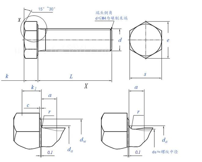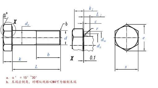 这种螺栓是目前使用最多的螺栓,该螺栓的的特点是螺杆只有前端为螺纹,靠近螺栓头部无螺纹。在计算螺栓的拧入深度时,需要关注实际有效的螺纹长度。