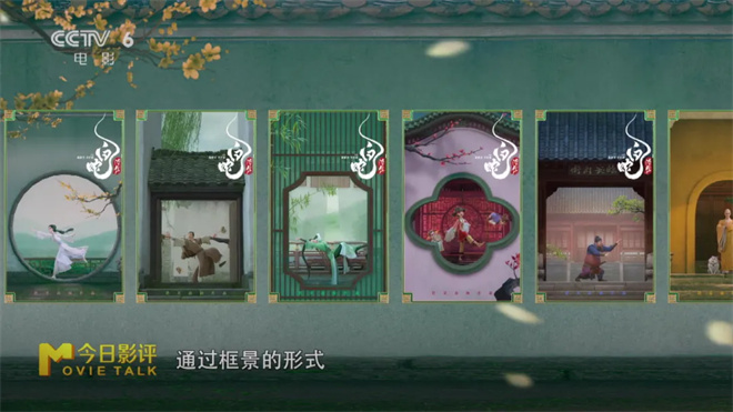 第三通过借景的表现手法,能够呈现出“所见皆是景,人在景中游”,苏式园林中会借山水、植物、动物 、人物等,把远处的风景介入到现存的画面里来。《白蛇:浮生》的系列海报就有这个特点,以圆形、方形、花瓣形的构图,把远景和近景通过框景的形式融合成一个整体。